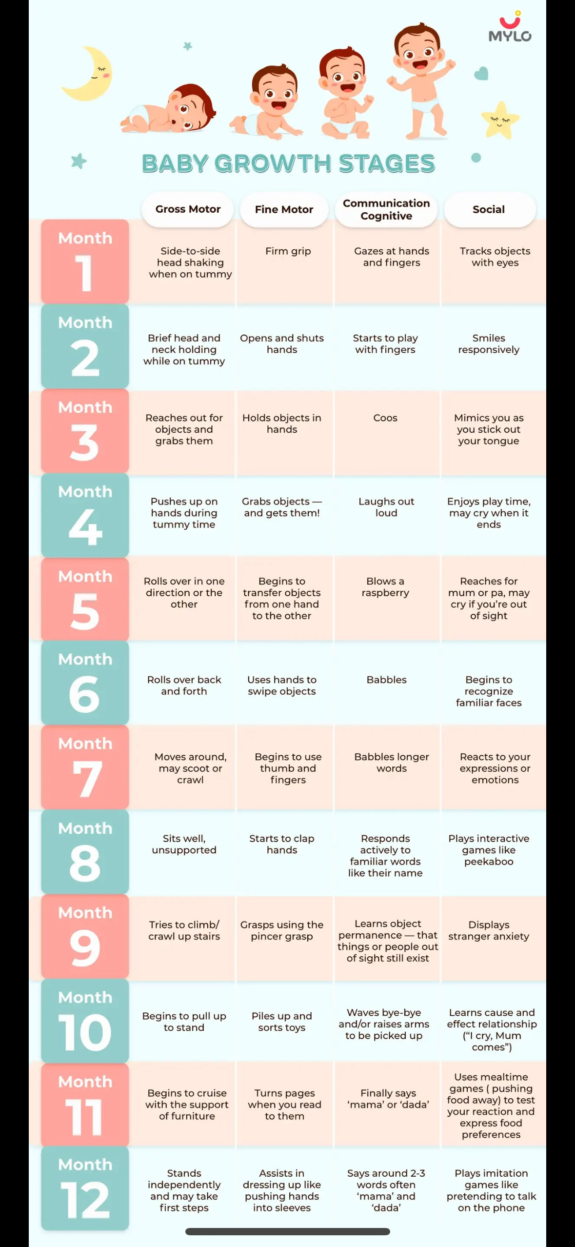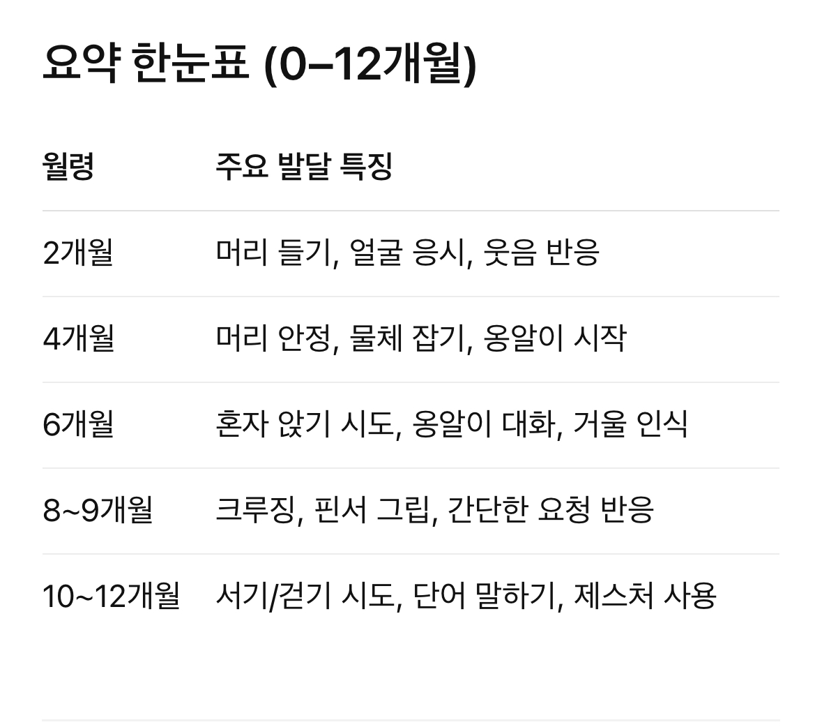 ๋ค์์ ๋ฏธ๊ตญ ํด๋ฆฌ๋ธ๋๋ ํด๋ฆฌ๋ ๋ฐ Parents.com, NewโParents.com ๋ฑ์ ์ ๋ณด๋ฅผ ๊ธฐ๋ฐ์ผ๋ก ์ ๋ฆฌํ ์ํ 0~12๊ฐ์ ์ฃผ์ ๋ฐ๋ฌ ๋จ๊ณ์