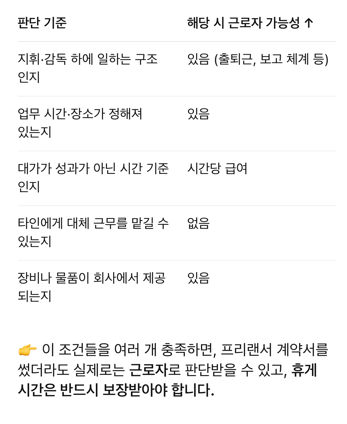 λ€μκ³Ό κ°μ μ‘°κ±΄μ΄ μλ€λ©΄ λ²μ μΌλ‘ κ·Όλ‘μλ‘ νλ¨λ μ μμ΅λλ€: