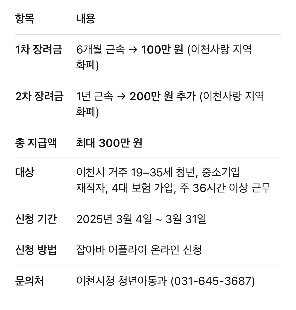 β’ 1μ°¨: 6κ°μ μ΄μ κ·Όμ μ β 100λ§ μ (μ§μνν)