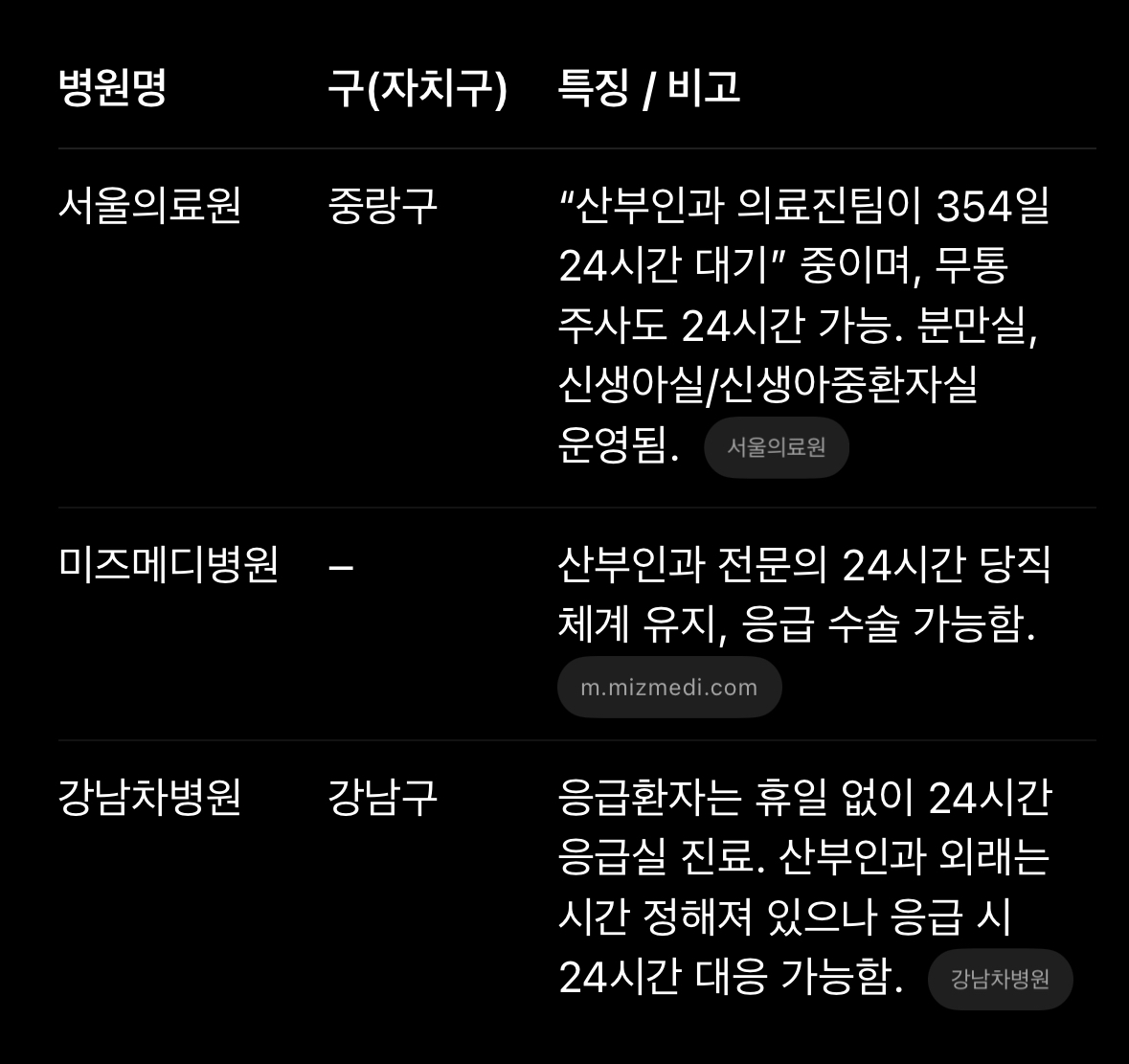 ๐ ์์ธ ๊ตฌ๋ณ 24์๊ฐ ์๊ธ ์ฐ๋ถ์ธ๊ณผ ๋ณ์