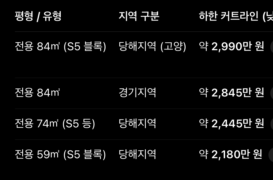 ๊ณ ์์ ๊ทผ๋ฐฉ(ํนํ ๊ณ ์ ์ฐฝ๋ฆ์ ๋์ ์ชฝ ํฌํจ)์์ ๊ณต๊ฐ๋ ์ฒญ์ฝ ๋น์ฒจ ์ปคํธ๋ผ์ธ ์ฌ๋ก๋ฅผ ๋ฐํ์ผ๋ก, ํ์ฌ ๋ํฅ๊ณผ ์ฐธ๊ณ ํ ๋งํ ์์น๋ฅผ ๊ฐ์ด ๋ณด์ฌ๋๋ฆด๊ฒ์. ๋ค๋ง ์ฒญ์ฝ ๋จ์ง๋ง๋ค ์กฐ๊ฑด(ํํ, ํน๋ณ๊ณต๊ธ ์ฌ๋ถ, ์ง์ญ ์ฐ์ ๊ณต๊ธ ๋ฑ)์ด ๋ค๋ฅด๊ธฐ ๋๋ฌธ์ ์๋ ์์น๋ค์ โ์ฐธ๊ณ ์๋ฃโ๋ก ๋์๋ ๊ฒ ์ข์์.